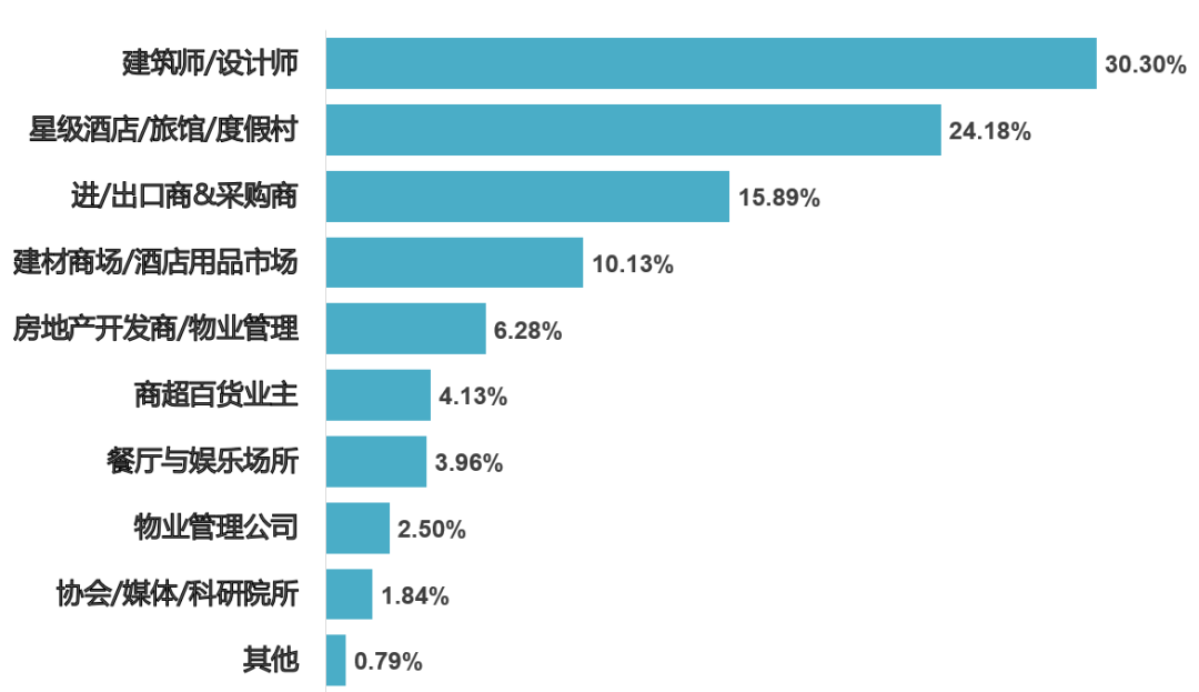 展会吸引了国内外酒店管理集团、百货及购物中心、地产开发商、建筑/室内设计师、照明设计师、工程承包商、物业管理公司、代理经销商、各地协会、媒体等,共计12,4505名专业观众前来参观采购!