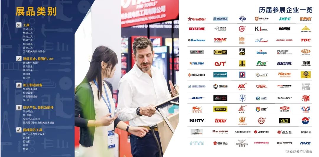 中国国际五金展作为全球的国际化专业五金展会平台,主办方在招展招商方面双重发力,旨在为参展商和采购商搭建优质贸易交流平台。招展方面,截至目前,国内报名参展的工具类企业有文登威力、江苏宏宝、长城精工、江苏杰杰、杭州巨 星、临安制钳、河北中泊、宁波金鼎、大连远东、上海西美、八达机电、小太阳砂轮、浙江野牛、浙江荣成、天工国际、飞达集团、江苏锋泰、丹阳华昌、方大控股、重庆弘愿、四川外贸、永康稳可、浙江东亚等。