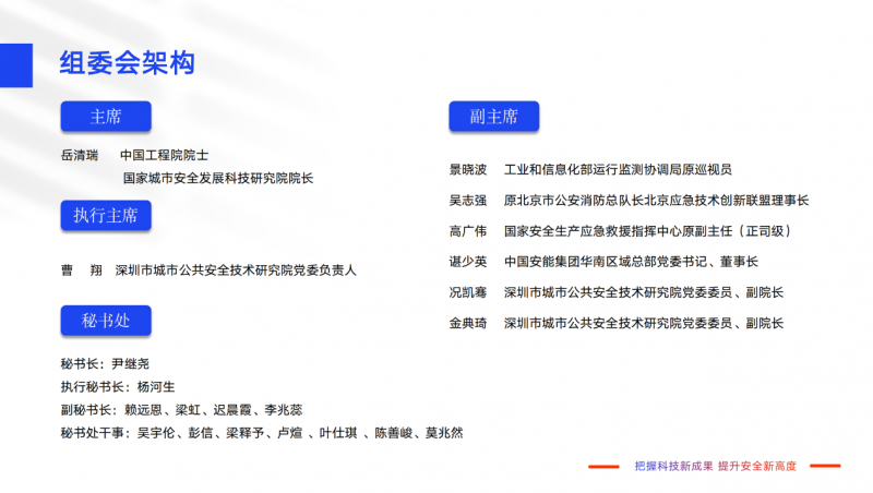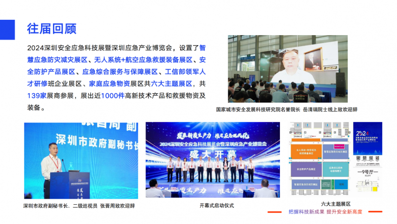 指导单位:广东省应急管理厅、深圳市突发事件应急委员会办公室、深圳市发展和改革委员会、深圳市工业和信息化局、深圳市科技创新局、深圳市应急管理局、深圳市商务局(深圳市保税区管理委员会)、深圳市投资促进局、深圳市消防救援支队