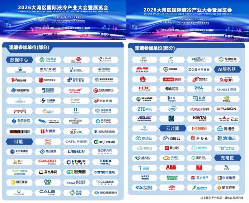 2026大湾区国际液冷产业大会暨展览会4月9日-11日,在深圳福田会展中心6/7号馆召开。将汇聚超 200 余家品牌企业参展,主要针对智算中心/数据中心、AI 服务器、云计算、储能/充电桩、研究院、高校及科研机构等领域。从技术、行业应用到生态,全方位展示液冷行业最新解决方案。展会同期开展液冷行业研讨会、供需对接会、行业评比、圆桌论坛、交流晚宴等,打造大湾区乃至亚太地区最佳交流展示平台。