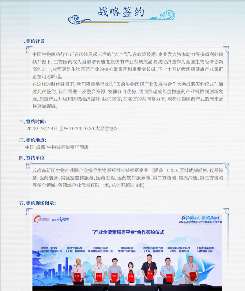 作为生物医药产业的年度盛会,第二届天府生物医药产业发展与合作大会将成为汇聚智慧、链接资源、推动创新的核心平台。诚邀行业同仁共赴成都,携手探索生物医药发展新路径,共创产业繁荣未来!