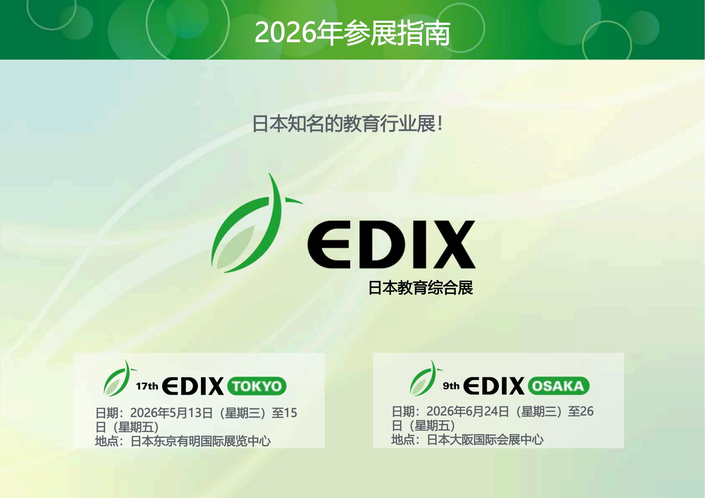 EDIX TOKYO 东京展EDIX 2026 参展指南EDIX 往届现场联系方式联系人:胡辉手机:180 175 99939(同微信)邮箱:2150438974@qq.comEND