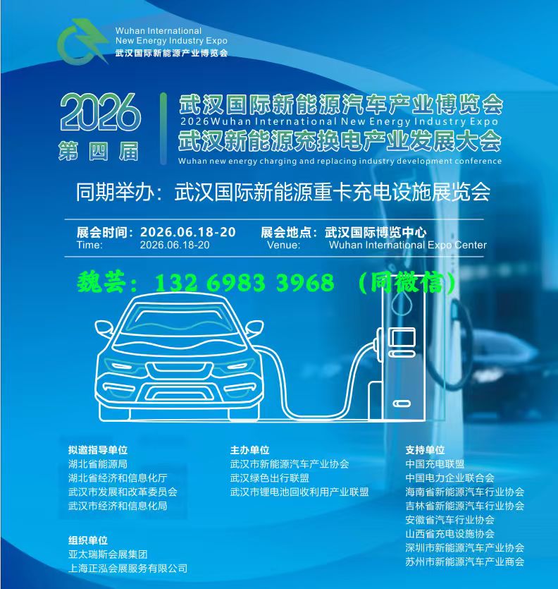 “2026武汉国际新能源汽车产业博览会暨武汉新能源充换电产业发展大会”拟定于2026年6月18-20日在武汉国际博览中心举办,本届展会以 “智汇未来·绿动出行” 为主题,聚焦新能源充换电、储能、氢能应用三大核心领域,打造集技术展示、政策解读、产业对接、学术交流于一体的新能源汽车产业盛会。