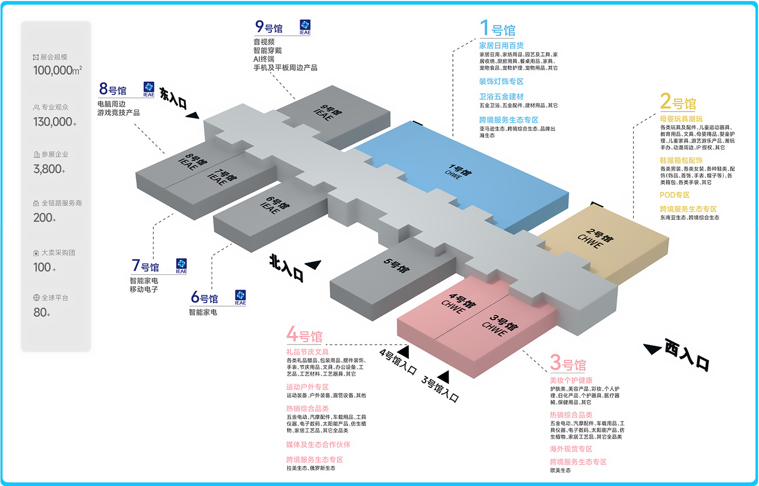 CHWE出海网全球跨境电商展由出海网主办,潮域展览承办致力为各跨境平台方、服务商、卖家、传统外贸、制造型企业打造一个具备全球化视野的商洽对接平台。至今已成功举办5届,规模逐年扩大,目前一年举办春秋两季,现已发展成为国内跨境电商行业最具影响力的biaogan展会。
