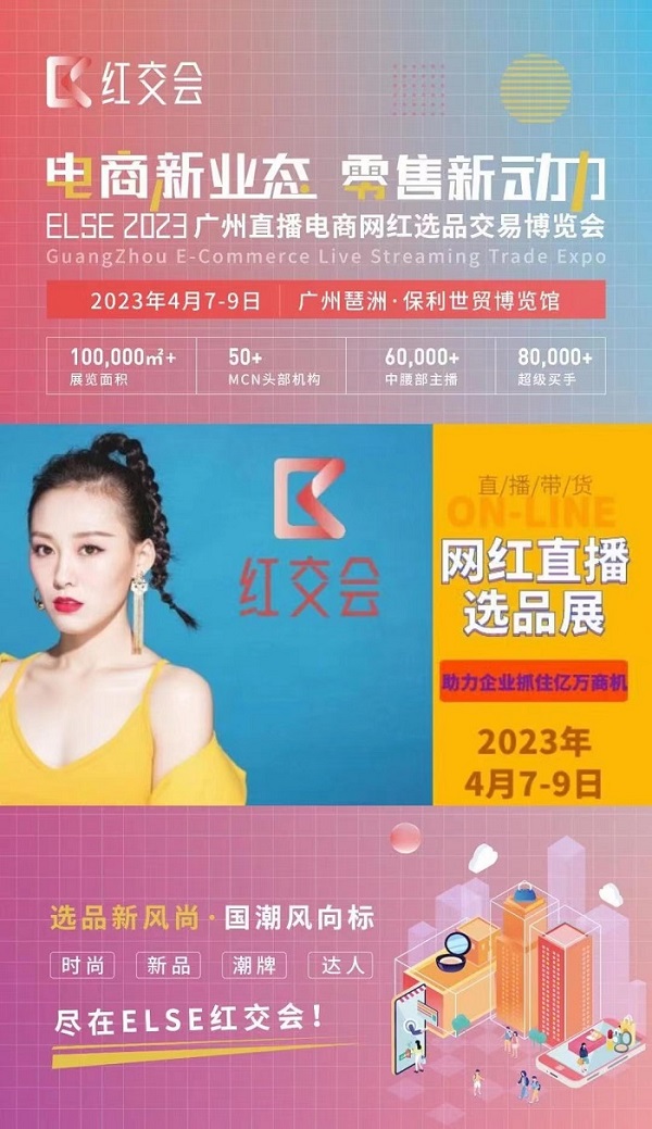 广州作为直播电商之都拥有数量庞大的电商企业、网红经济公司、头部主播。万众瞩目的电商行业盛会,第九届ELSE2023直播电商网红选品交易博览会博览会将于2023年4月7-9日在广州琶洲·保利世贸博览馆和2023年8月28-30日在深圳福田会展中心举办ICIE中国(广州/深圳)国际网红直播电商交易博览会(简称“ICIE直播展”),盛大召开本次博览会展出面积100000平方米,2000+参展企业,数百家行业媒体竞相报道,将吸引网红等专业买家团16万多人次现场洽谈!数百万人观看直播,助力传统企业提升参展品牌曝光度对接电商直播供应链、买家团、网红MCN机构等.为品牌商、渠道商、服务商提供具有商业价值的对接合作!助推国内国际经济双循环,构建电商行业发展新格局.