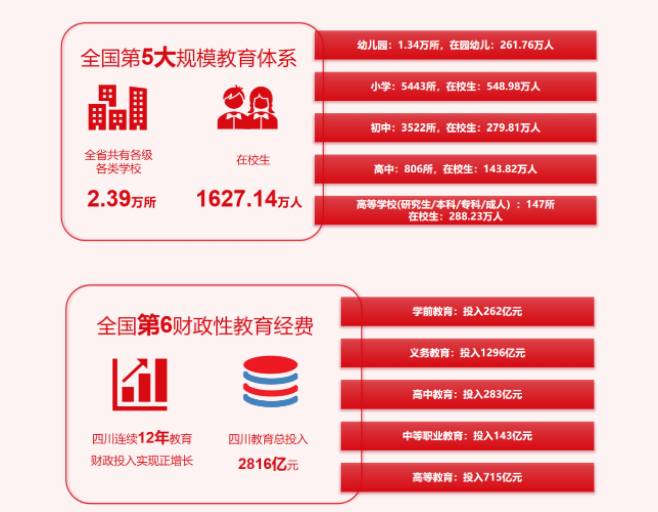 党的十八大以来,四川坚持优先发展教育事业,纵深推进教育改革,加快推进教育现代化,建设教育强省,教育高质量发展取得明显成效,书写了“非凡十年”的精彩篇章。