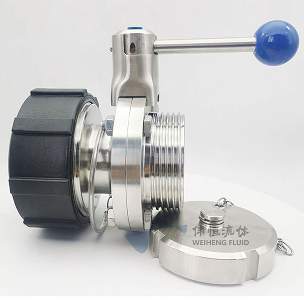 卫生级手动定制版不锈钢外螺纹蝶阀加盲盖