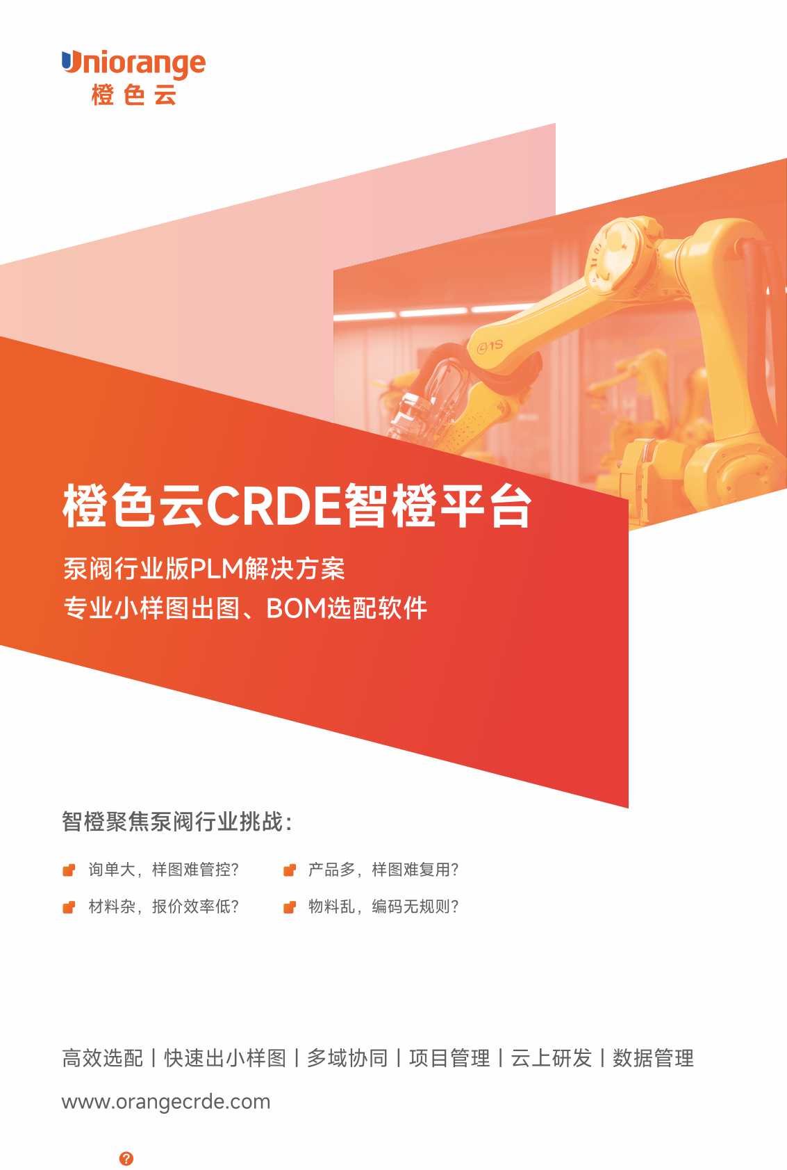 【智橙PLM泵阀行业版】是橙色云针对中小泵阀企业的业务场景和真实需求推出的研发管理平台,在温州国际泵阀展上一经发布,就得到浙江、江苏、安徽等地阀协、商会、企业的一致赞誉。