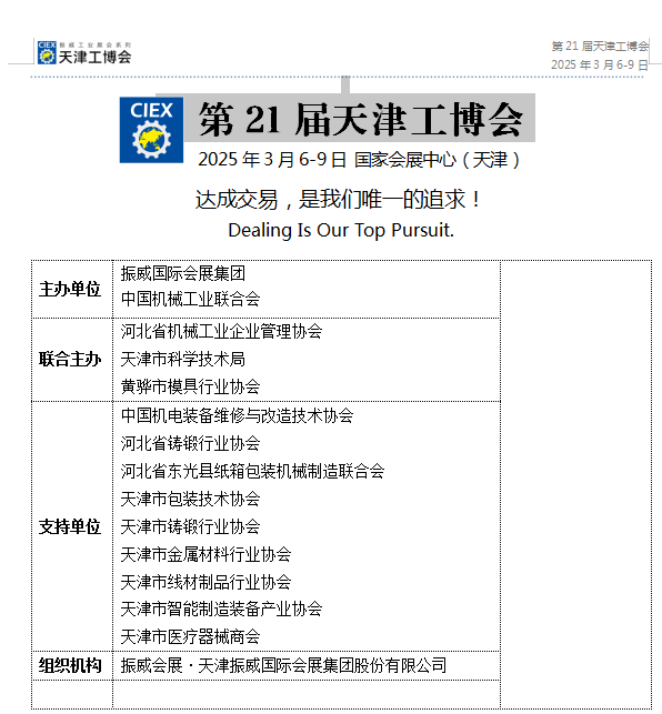 让我们满怀着憧憬与期待,一同期许天津工博会在未来能够持续不断地书写辉煌篇章,继续为全球工业发展缔造更多的精彩与奇迹。让我们共同见证工业领域在时代的浪潮中不断创新、不断突破,向着更加辉煌灿烂的明天奋勇前行。