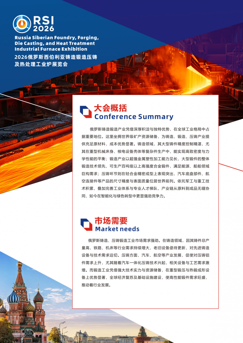 2026俄罗斯西伯利亚铸造锻造压铸及热处理工业炉展览会