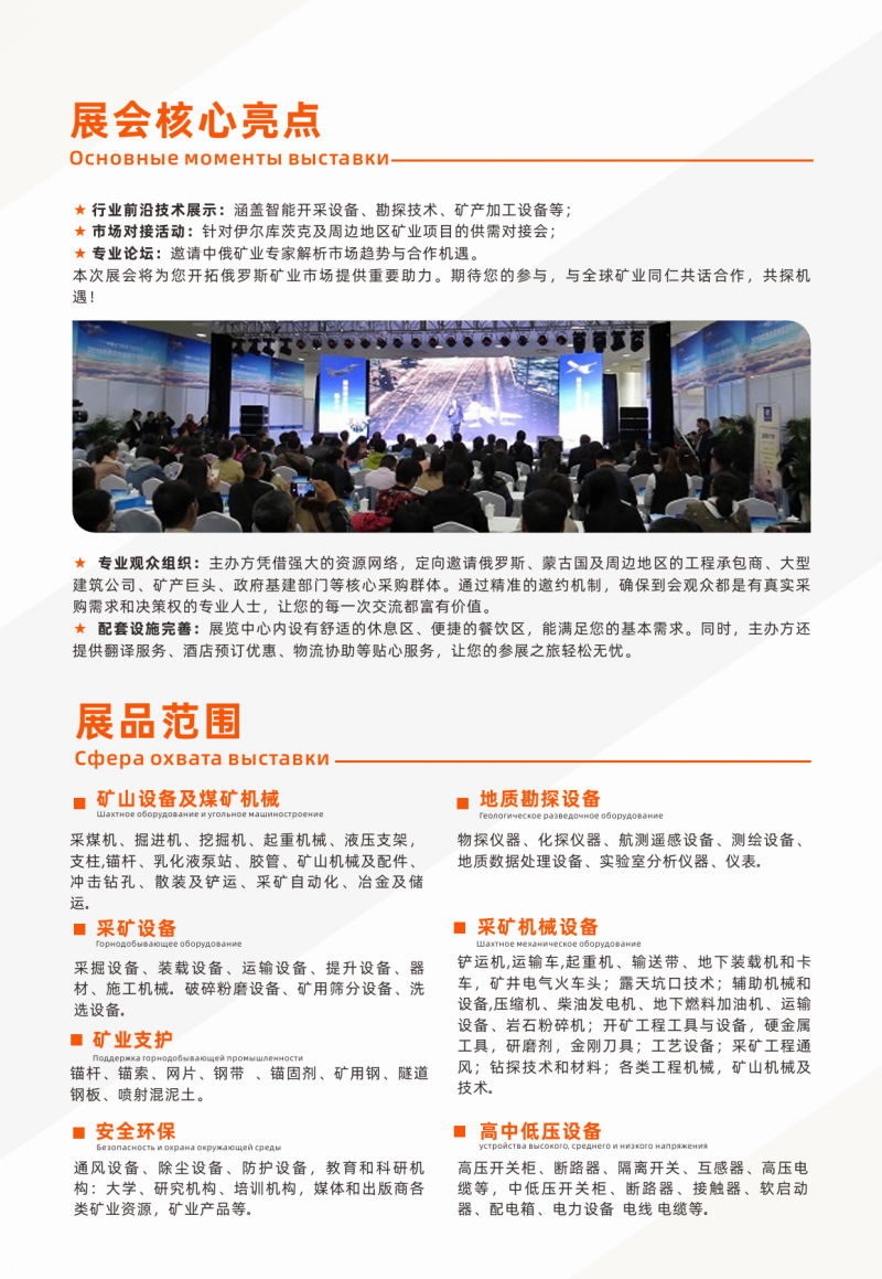 ● 市场对接活动:针对伊尔库茨克及周边地区矿业项目的供需对接会。