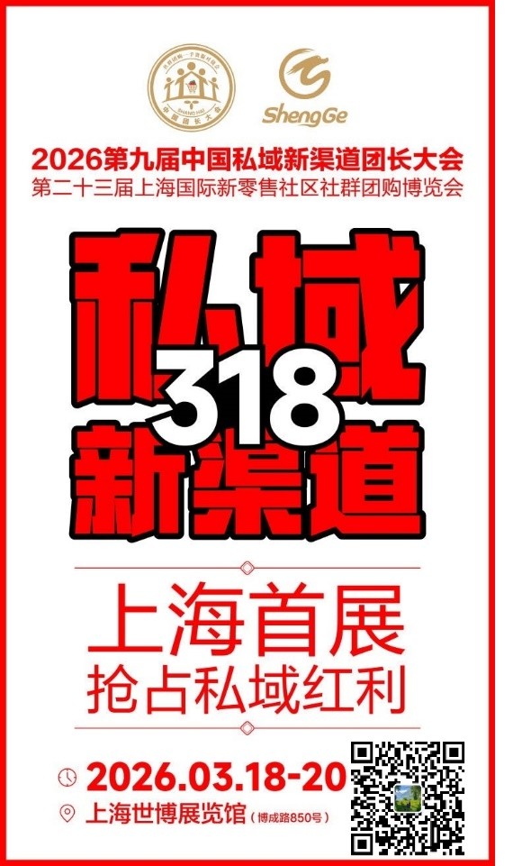 好消息!2026 第九届中国私域新渠道团长大会3月18日上海世博展览馆隆重举办!